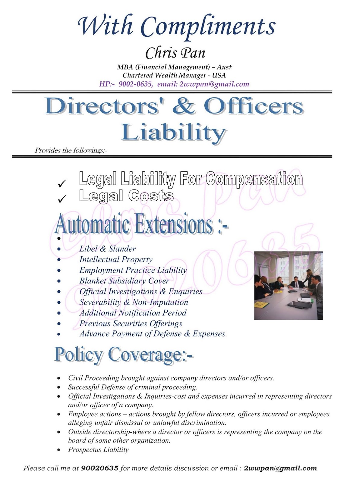 Directors And Officers Liability Insurance Or D O Insurance Covers The Cost Of Claims Made Against The Companies Insurance Sales Insurance Business Insurance