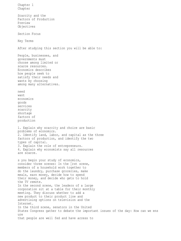 Ch 1 Sec 1 Factors Of Production Labour Economics