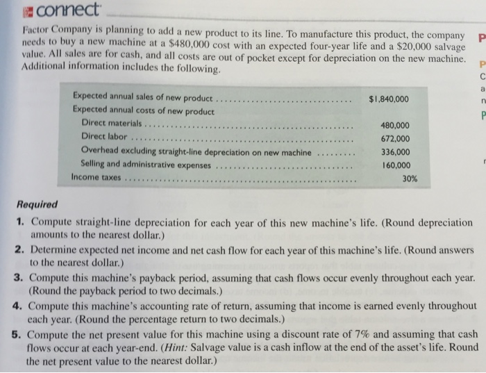 Solved Connect Factor Company Is Planning To Add A New P Chegg Com